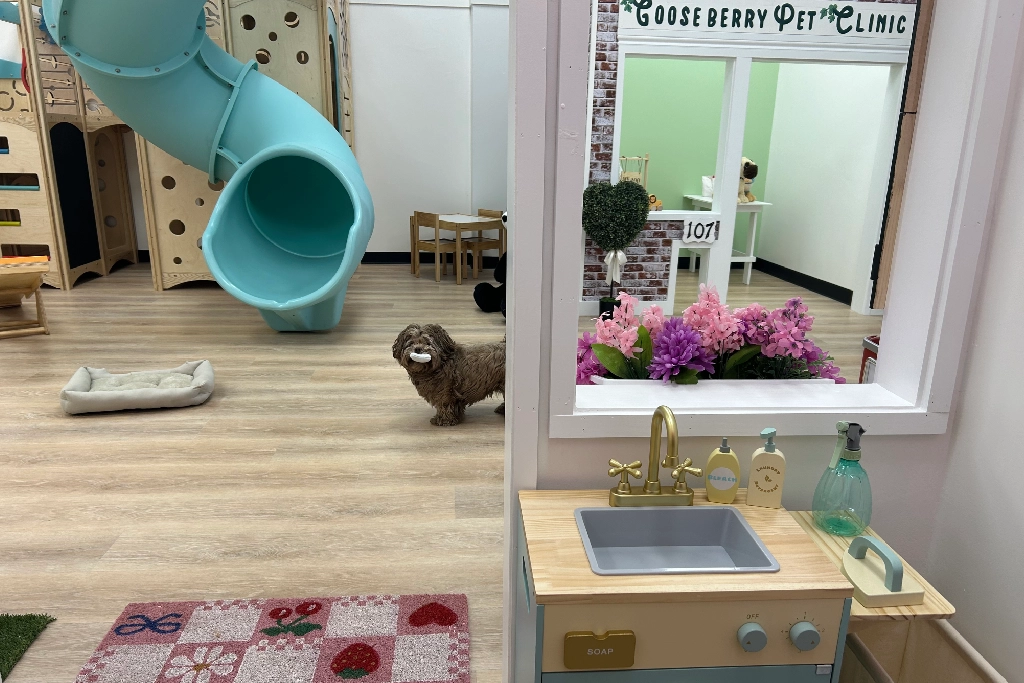 Step into the Village of Berry Blast City, a creative play space where kids can explore a world built just for them. This imaginative village features themed play stations including a Vet Clinic, Play House, Garage, Diner, and Market. Each space encourages role-playing and storytelling, helping children develop creativity, social skills, and confidence while they play.